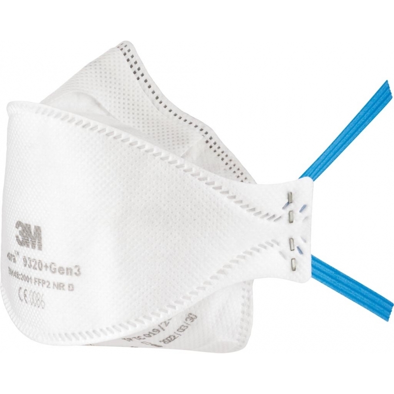 Półmaska filtrująca z serii Aura™ 9320+Gen3. - typ FFP2 – chroni układ oddechowy przed pyłami i mgłami, zakres użycia do 12 x NDS - technologia filtracyjna niskich oporów oddychania łączy zalety filtrującego materiału elektretowego zapewniając komfort i łatwość oddychania - składania 3-panelowa konstrukcja dopasowuje się do różnych kształtów twarzy - wyprofilowana blaszka nosowa ma zakrzywiony, niski profil, dzięki czemu dobrze dopasowuje się do kształtu nosa i konturów ocz zapewniając dobre pole widzenia i kompatybilność z goglami i okularami ochronnymi - innowacyjna patka podbródkowa ułatwia składanie i dopasowanie do twarzy pomagając osiągnąć optymalne dopasowanie - tłoczony panel górny ogranicza przepływ wydychanego ciepłego i wilgotnego powietrza przez górną część maski zmniejszając parowanie okularów i gogli - duża i miękka pianka nosowa oraz gładka wewnętrzna wyściółka są wyjątkowo komfortowe i delikatne dla skóry - małe opakowanie 20 szt. - spełnia wymagania normy EN149