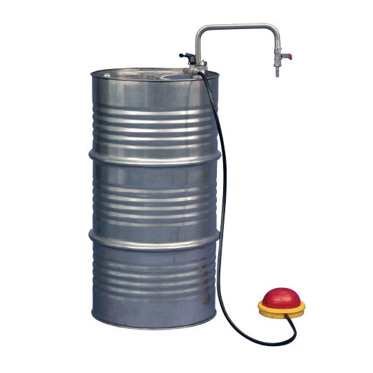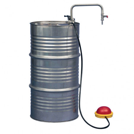 Pompa do beczek do rozpuszczalników, do beczek o pojemności do 200 litrów. Głębokość zanurzenia: zmienna. Pojemność: 30 litr/min.