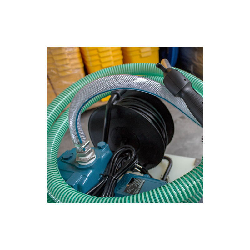 Pompa o wydajności min 30 l/min i o mocy umożliwiającej pracę z wężami o podanej długości.