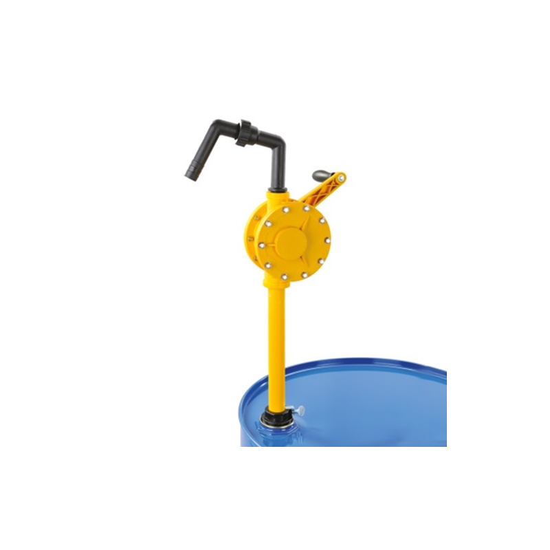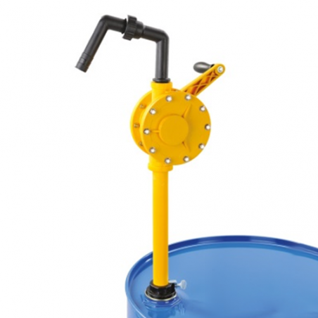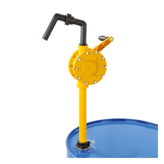 Pompa rotacyjna z PP do beczki o pojemności 200 litrów z handwrap i 2-cylindrową śrubą, odpowiednia ciecze na bazie ropy naftowej, chemikalia na bazie wody, rozpuszczalniki i biodiesel.