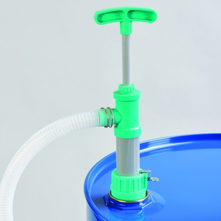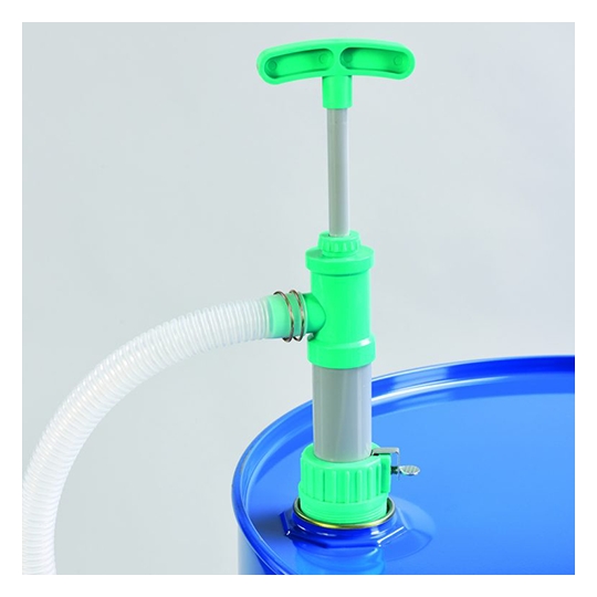 Pompa ręczna, pompa syfonowa z trwałego PVC. Odpowiedni do różnych płynów, w tym wody, oleju napędowego, lekkich olejów, łagodnych, niekorozyjnych chemikaliów i środków odtłuszczających. Szczegóły: