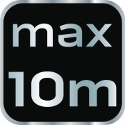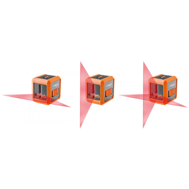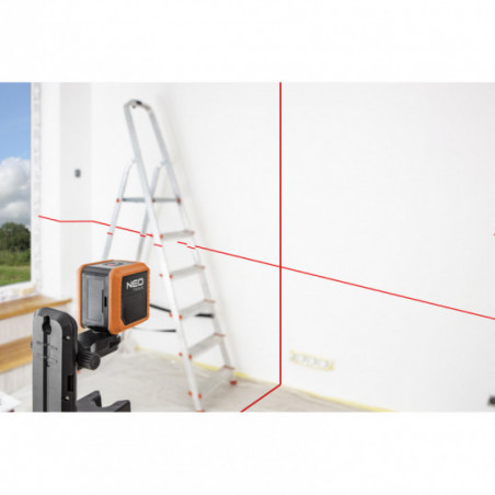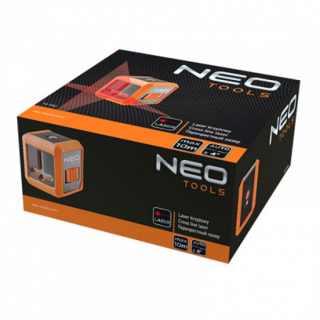 Laser krzyżowy 10 m, z etui i uchwytem magnetycznym, zasilanie 2 x AAA, linia pozioma, pionowa, krzyżowa, dokładność +/- 0.5 mm/m; długość fali 635 nm, 2 klasa lasera, zakres samopoziomowania 5°, gwint do statywu 1/4", certyfikat CE
