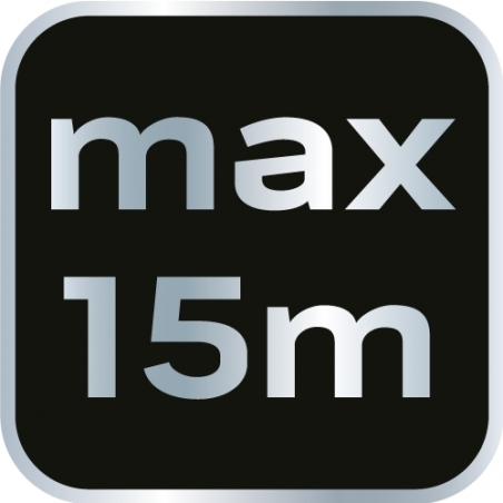 Laser krzyżowy 15 m, zielony, uchwyt, etui, zasięg – 15 m, zielony laser– długość fali świetlnej lasera 520 - 530 nm, dokładność samopoziomowania +/- 0,5 mm, zakres samopoziomowania 4°, klasa lasera 2, moc lasera < 1mW, zasilanie baterie 2 x AA