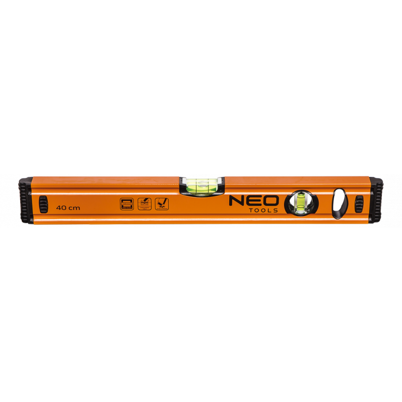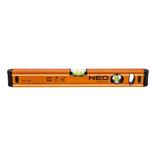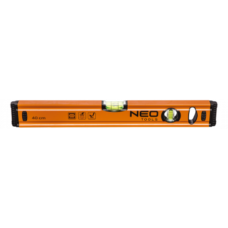 Poziomnica aluminiowa 40 cm, 2 libelle, grubość profilu 1.5 mm, frezowana powierzchnia, dokładność <0.5 mm/m