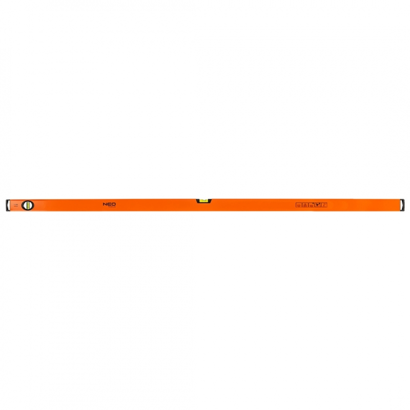 Poziomnica aluminiowa, 2 libelle, frezowana dolna powierzchnia, 150 cm, Aluminiowy profil o grubości 1.2 mm, Dokładność 0.5 mm/m, 2 libelki: pion, poziom, Libelki z materiału odpornego na uderzenia, Ciecz odporna na promieniowanie UV, Frezowana dolna powierzchnia miernicza , Zakończenia amortyzujące wstrząsy podczas upadku poziomnicy