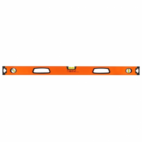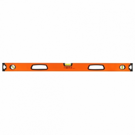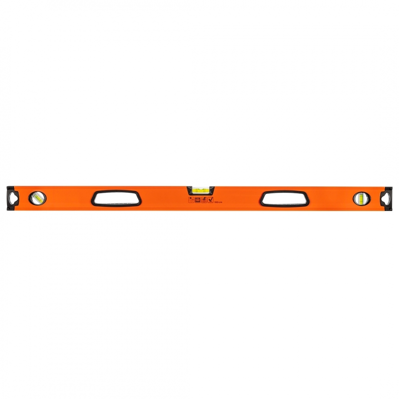 Poziomnica aluminiowa z uchwytem, 3 libelle, magnes, frezowane powierzchnie miernicze, 100 cm, Aluminiowy profil o grubości 1.3 mm, Dokładność 0.5 mm/m, 3 libelki: pion, poziom i 45°, Libelka pozioma z 6 liniami do poziomu oraz spadków 1% i 2%, Libelki z materiału odpornego na uderzenia, Ciecz odporna na promieniowanie UV, Frezowana dolna powierzchnia miernicza , Zakończenia amortyzujące wstrząsy podczas upadku poziomnicy, Z uchwytami, Z magnesem