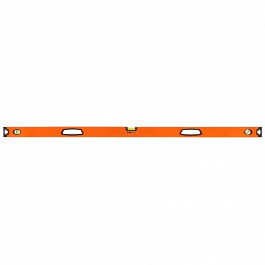 Poziomnica aluminiowa z uchwytem, 3 libelle, magnes, frezowane powierzchnie miernicze, 150 cm, Aluminiowy profil o grubości 1.3 mm, Dokładność 0.5 mm/m, 3 libelki: pion, poziom i 45°, Libelka pozioma z 6 liniami do poziomu oraz spadków 1% i 2%, Libelki z materiału odpornego na uderzenia, Ciecz odporna na promieniowanie UV, Frezowana dolna powierzchnia miernicza , Zakończenia amortyzujące wstrząsy podczas upadku poziomnicy, Z uchwytami, Z magnesem