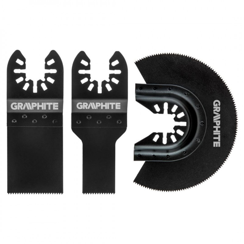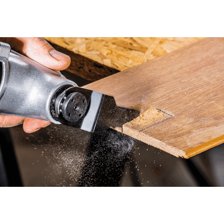 Zestaw brzeszczotów do urządzenia wielofunkcyjnego do obróbki drewna, 3 szt.: brzeszczot HCS, szerokość 20 mm; brzeszczot, szerokość 34 mm, zęby trójstronnie ostrzone, szlifowane; tarcza półokrągła HCS, średnica 87 mm, 200 zębów.