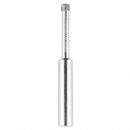 Wiertła diamentowe do gresu x 5 szt.: 5, 6, 8, 10, 12 mm, nasyp diamentowy 50/60K. Prowadnica do wiercenia z przyssawką, 10 otworów: 2x5 mm, 2x6 mm, 2x8 mm, 2x10 mm, 2x12 mm, zalecane chłodzenie, zestaw 6 szt.