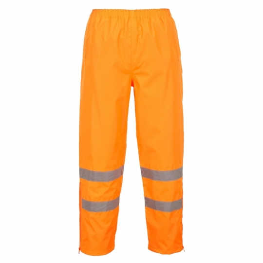 - Wodoodporne spodnie ostrzegawcze wykonane z najwyższej jakości tkaniny oddychającej. Posiadają bardzo funkcjonalne boczne kieszenie przelotowe oraz elastyczne wykończenie w pasie.