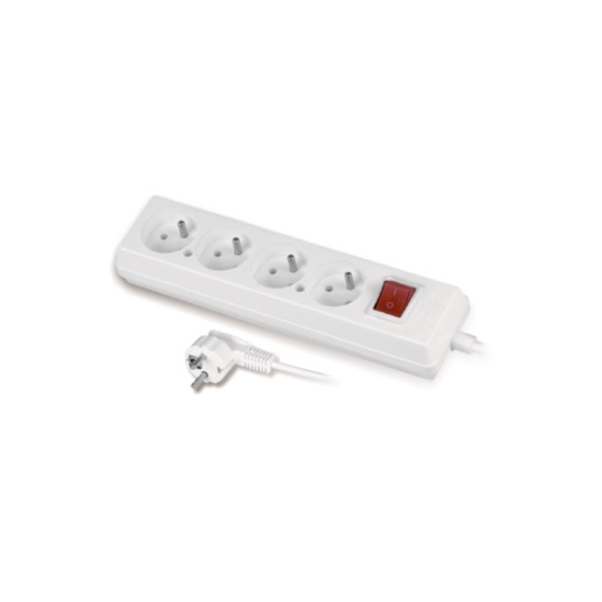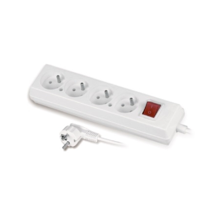 Przedłużacz stały z czterokrotnym gniazdem wtyczkowym z wyłącznikiem i uziemieniem