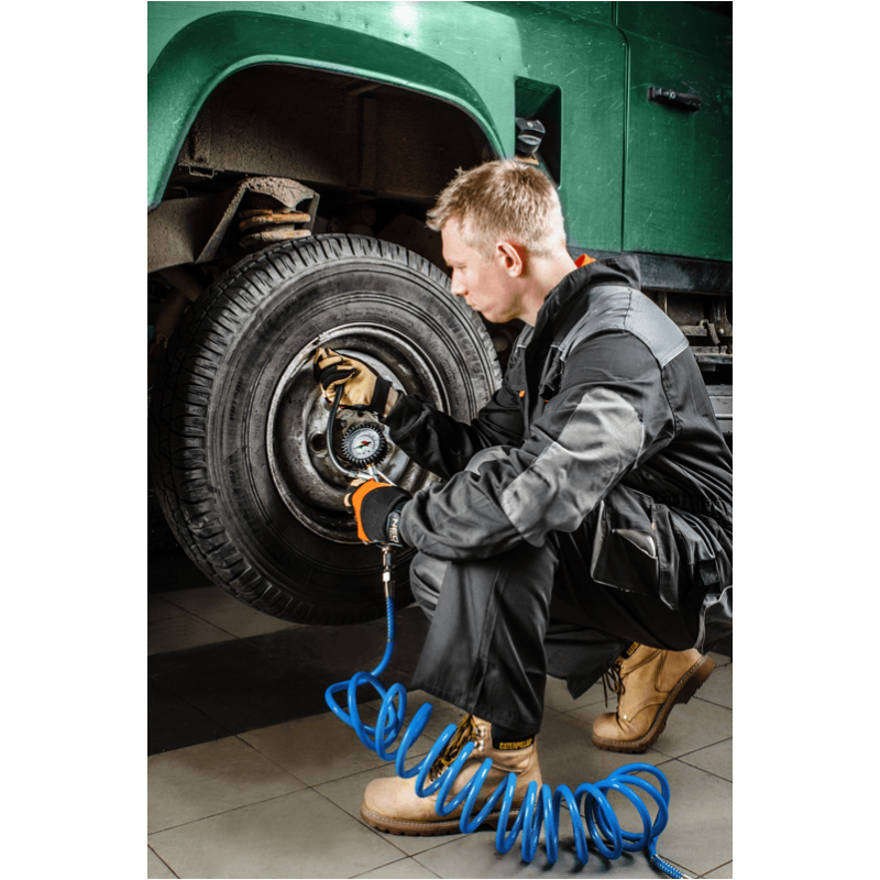 Przewód ciśnieniowy spiralny, średnica 6.5 x 10 mm, długość 15 m, poliuretanowy, ciśnienie robocze 8 barów, zakres pracy od -10°C do + 35°C