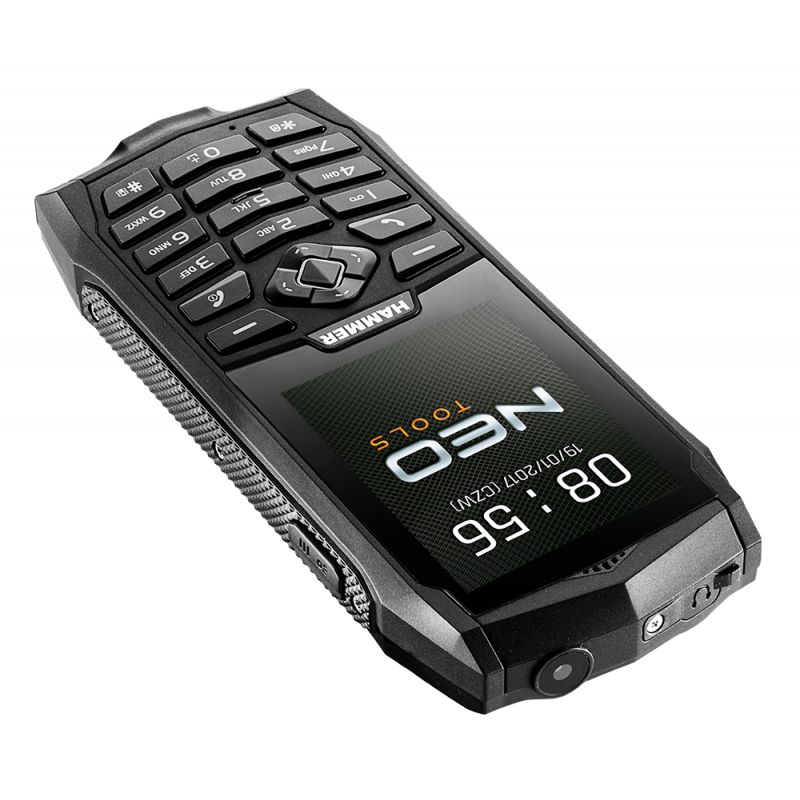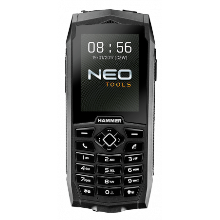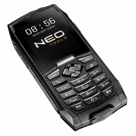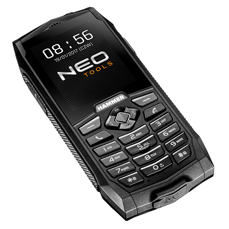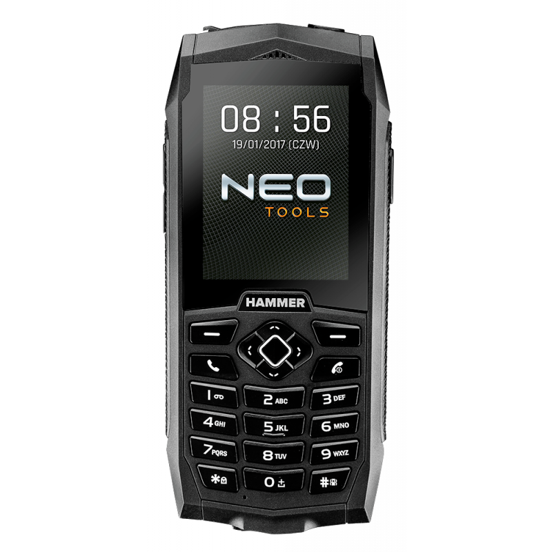 Telefon do ciężkich warunków NEO (nr ref. 84-002), (HxWxL) 133,5 x 58 x 18 mm, wyświetalacz 2.4", aparat VGA, Bluetooth, radio, latarka, dual sim, miejscę na kartę micro sd, beteria 2000 mAh, wejście jack