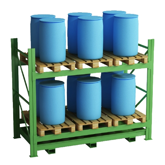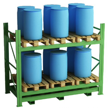 Metalowa konstrukcja, niezwykle stabilna, do składowania 6 pojemników na palecie euro. Przetrzymywanie pojemników na palecie daje możliwość przewożenia ich wózkiem widłowym. Dodatkowo wyposażony w wannę wychwytową.