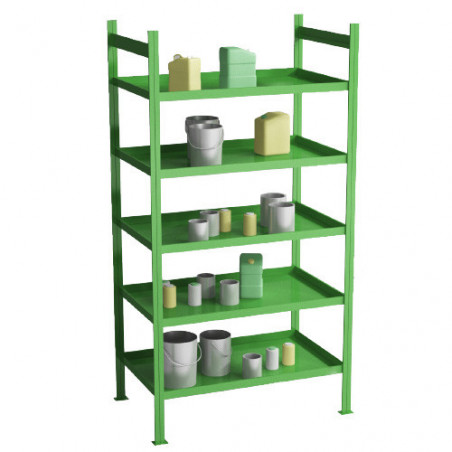 Regał przeznaczony do przechowywania małych pojemników. Dajemy możliwość łączenia regałów, by mogli Państwo zabudowywać nimi całe ściany w magazynach. Regał został wyposażony w pięć półek wanienkowych. Takie wyprofilowanie półek umożliwia zbieranie wycieków w wanience zbiorczej.