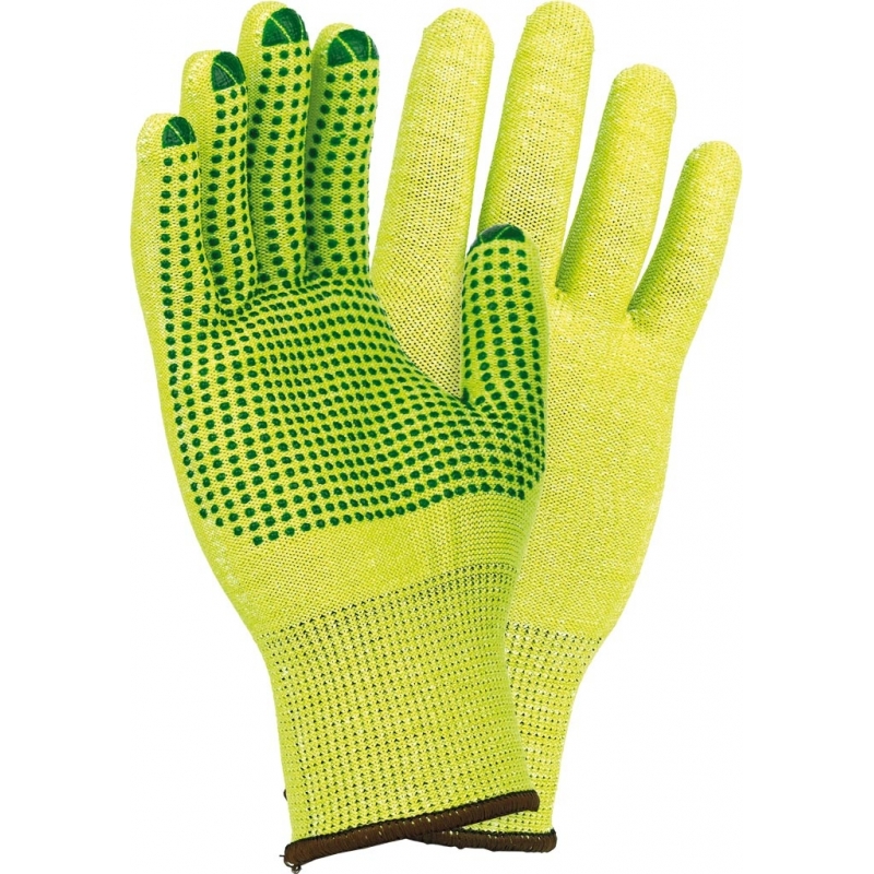 Rękawice ochronne dziane o wysokiej odporności na rozdarcie z jednostronnym nakropieniem. - wykonane z nowoczesnych włókien poliester/poliamid/włókno szklane - nakropienie PCV na wewnętrznej części dłoni poprawia pewność chwytu i operowanie przedmiotami - najwyższy współczynnik odporności na rozdarcie (4) - bezszwowe - przeznaczone do lekkich i ciężkich prac montażowych - zgodne z normami EN388 (poziomy odporności 2 3 4 1) i EN420