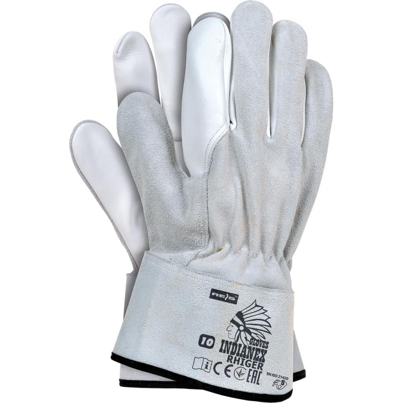 Rękawice ochronne w całości wykonane z wysokiej jakości skóry. - skóra bydlęca dwoinowa połączona ze skórą kozią licową - całodłonicowe - część chwytna wykonana z jednego kawałka skóry licowej, dzięki czemu wykazują większą wytrzymałość i odporność na przetarcia - całoskórzane, czyli w całości wykonane ze skóry, włącznie z mankietem wykonanym ze skóry dwoinowej, chroniąc w ten sposób przed przemiękaniem oraz zabezpieczając nadgarstek przed urazami - palec wskazujący w całości wykonany ze skóry licowej - popularnie stosowane do ogólnych prac mechanicznych - wykorzystywane w budownictwie, przemyśle ciężkim