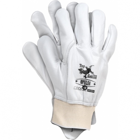 Rękawice ochronne wykonane z wysokiej jakości skóry bydlęcej.