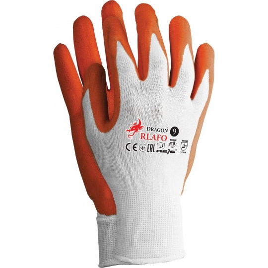 Rękawice ochronne Mandarin powlekane spienionym latexem w kolorze pomarańczowym.