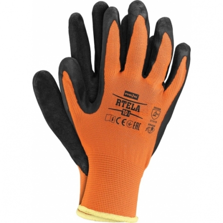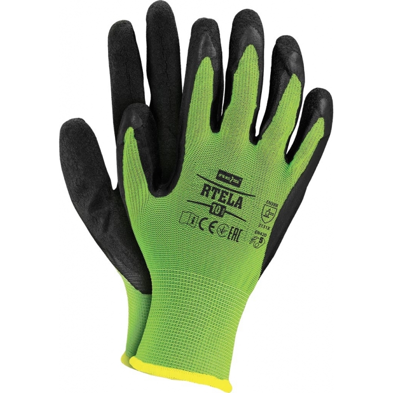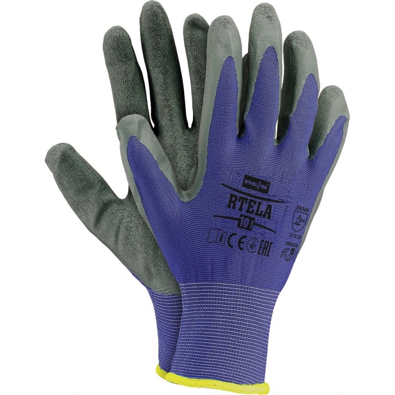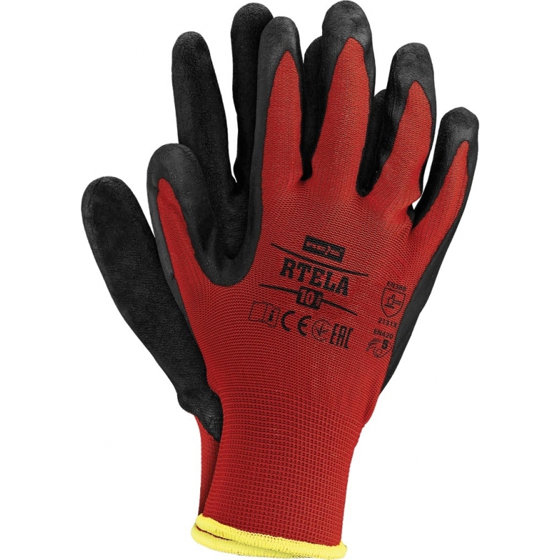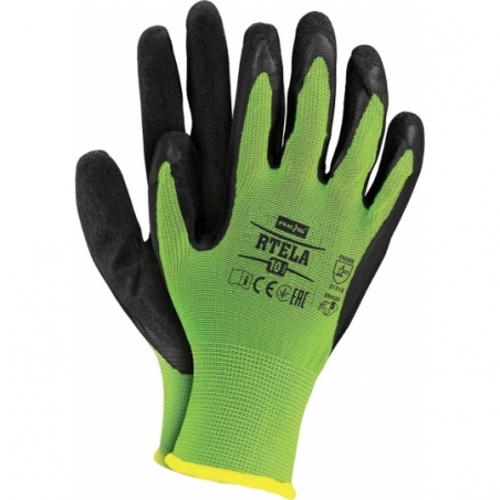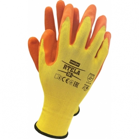 RAW-POL RTELA to lekkie i elastyczne rękawice ochronne wykonane z poliestrowej dzianiny (ścieg 13), powlekane lateksem o chropowatej strukturze. Zapewniają doskonałą chwytność bez usztywnienia, wysoką manualność i odporność na ścieranie. Nie kurczą się w kontakcie z wodą i świetnie dopasowują się do dłoni. Każda para pakowana w osobną torebkę.