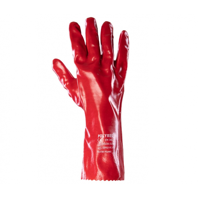 ..Część dłoniowa: Powleczenie pełne, w kolorze czerwonym, oblane PCV,