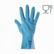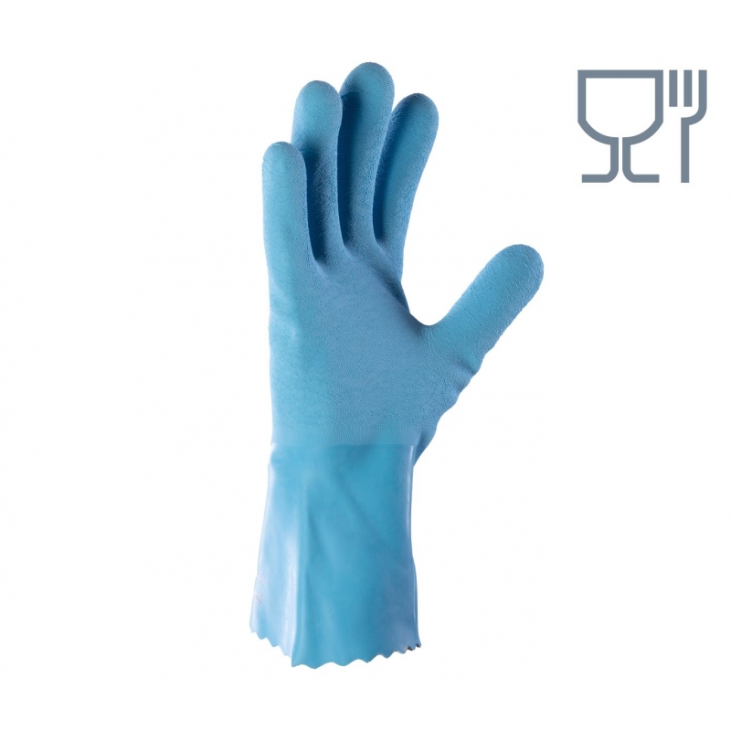 ..Materiał/Dzianina: w kolorze niebieskim, rękawice wykonane z wodoodpornego naturalnego kauczuku na kanwie syntetycznej dzianiny nylonowej,