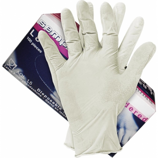 Rękawice lateksowe SEMPERGUARD. - wyprodukowane z wysokiej jakości naturalnego lateksu - delikatnie pudrowane, co ułatwia wkładanie i zdejmowanie rękawic - pasują na prawą i lewą rękę - wysokie możliwości manualne i dotykowe dzięki delikatnie chropowatej powierzchni - dopuszczone do kontaktu z żywnością - spełniają wymagania norm EN420, EN374-2, EN374-3, EN455 - pakowane po 100 szt. w opakowaniu (rozmiar XL po 90 sztuk)