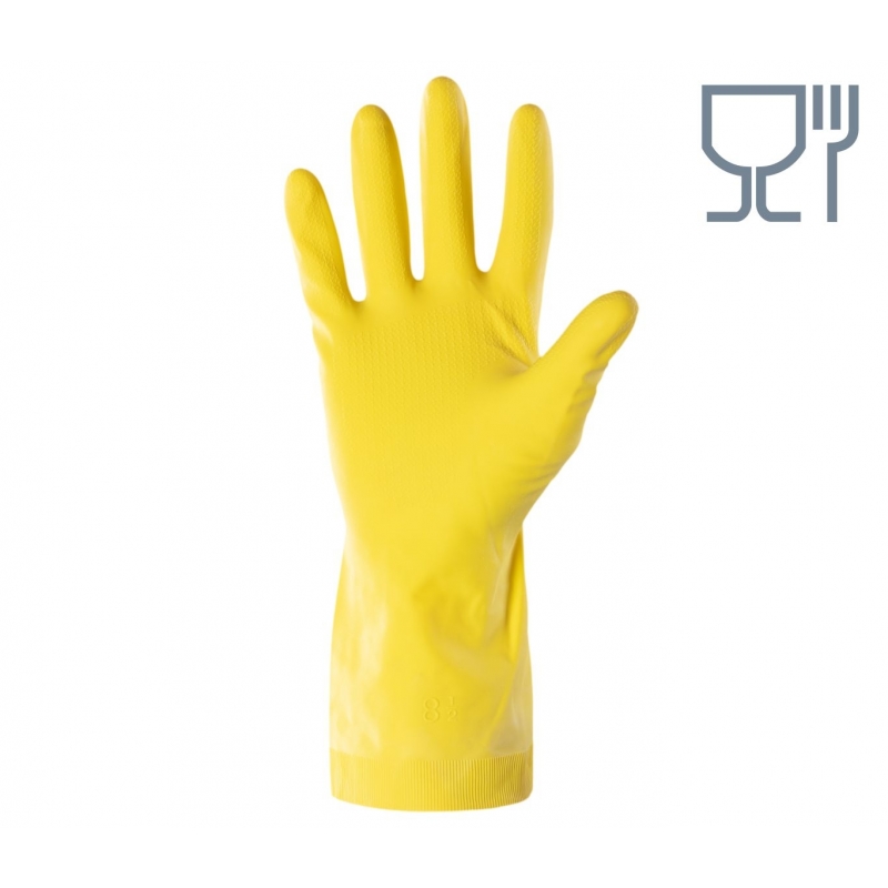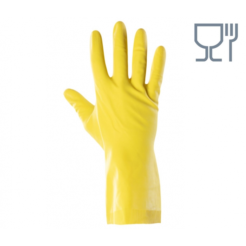..Materiał/Dzianina: w kolorze żółtym, rękawice wykonane z naturalnego lateksu z bawełnianym flokiem,