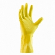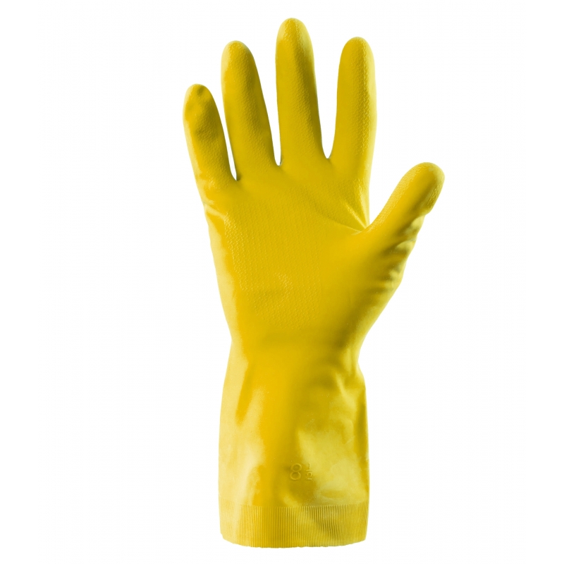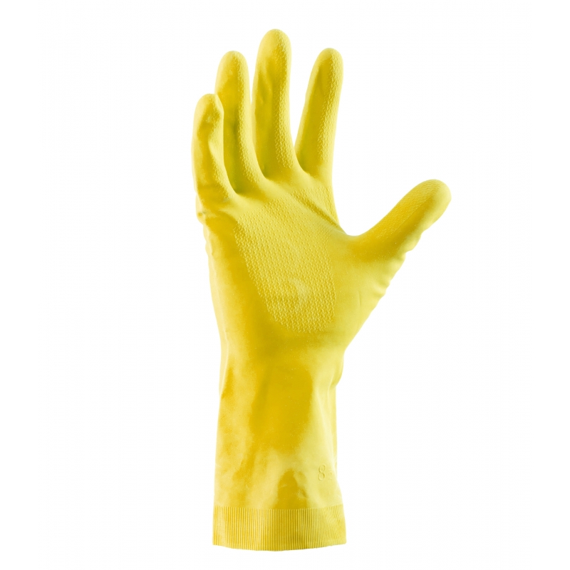 ..Materiał/Dzianina: w kolorze żółtym, rękawice wykonane z naturalnego lateksu z bawełnianym flokiem,