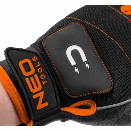 Rękawice robocze z magnesem i rzepem, bez trzech palców, rozmiar 10", odporność na ścieranie 2, odporność na przecięcie ostrym narzędziem 1, odporność na rozdzieranie 2, odporność na przekłucie 2, CE
