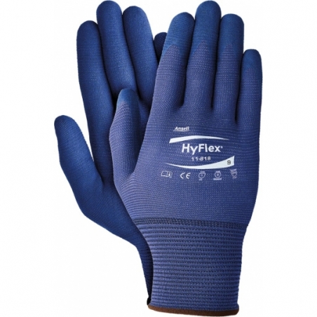 Rękawice ochronne HyFlex® 11-818. - wykonane z nylonu i spandexu (ścieg 18) - niezwykle cienka powłoka pianki nitrylowej FORTIX™ jest w warunkach grożących obtarciami do trzech razy trwalsza niż w przypadku porównywalnych materiałów, co znacząco przedłuża czas użytkowania rękawic, a także zapewnia bardziej niezawodny chwyt na sucho i jest o 20% bardziej przewiewna niż inne materiały - efekt to chłodniejsze, bardziej suche oraz mniej spocone dłonie - bezszwowa nylonowo-spandeksowa wyściółka daje odczucie jak przy pracy gołymi rękami - jest przewiewna, wygodna i zapewnia zwiększoną wrażliwość na opuszkach palców, przydatną przy precyzyjnych pracach - dzięki zastosowanej technologii Ansell ZONZ® Comfort Fit rękawice lepiej dopasowują się do naturalnego kształtu ludzkiej dłoni, zapewniając lepszą ochronę, przewiewność i większy zakres wykonywanych ruchów - znajdują zastosowanie przy pracach montażowych, obsłudze linii produkcyjnych, precyzyjnych pracach mechanicznych - spełniają wymagania norm EN388 (poziomy odporności: 4 1 2 1) i EN420