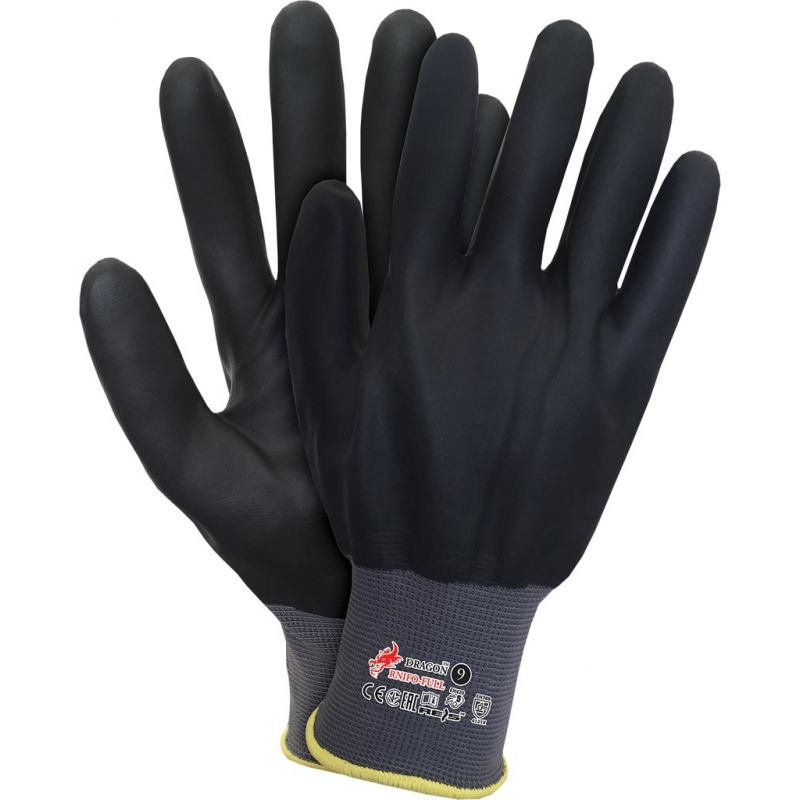 Rękawice ochronne wykonane z nylonu, powlekane na całej dłoni powłoką nitrylu w kolorze czarnym. - powlekane zarówno na części chwytnej jak i wierzchniej powłoką spienianego nitrylu typu FOAM - zakończone ściągaczem - charakteryzują się zwiększoną odpornością na ścieranie i przetarcie - zapewniają manualność oraz doskonałe czucie trzymanego przedmiotu - nitryl zwiększa odporność na smary i oleje, a technologia FOAM zwiększa elastyczność rękawicy - sprawdzają się w miejscach, gdzie następuje kontakt z wyżej wymienionymi substancjami - wykorzystywane do ogólnych prac mechanicznych - zgodne z normami EN388 (poziomy odporności: 4 1 2 1) i EN420