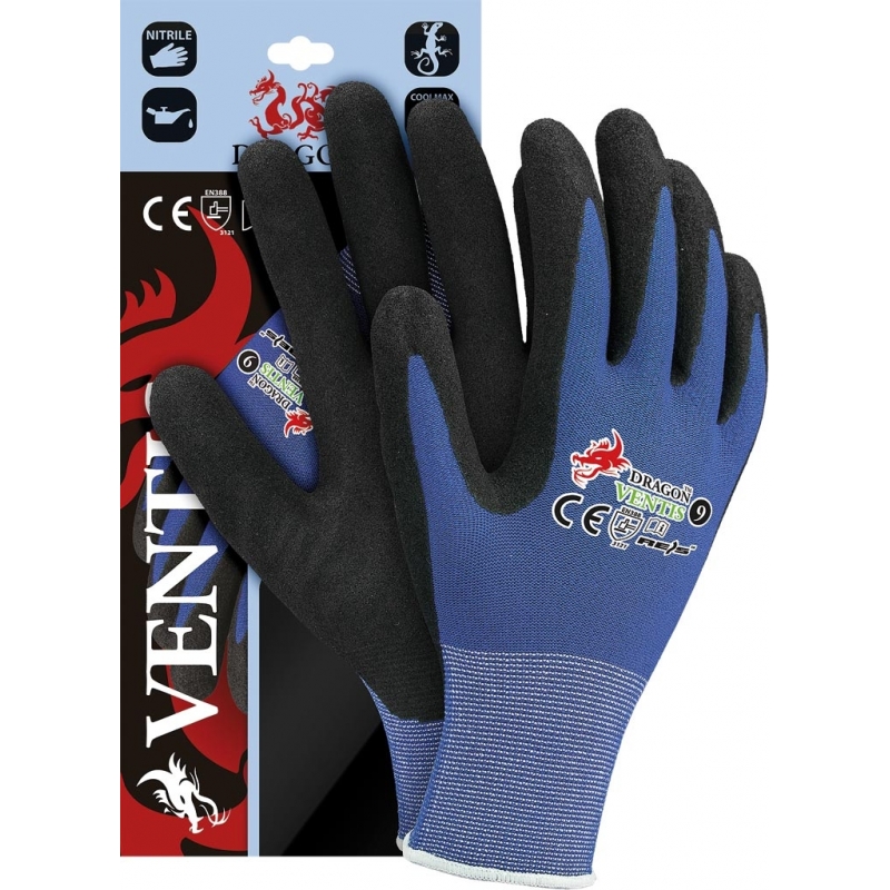 Rękawice ochronne wykonane z przędzy Coolmax®, powlekane nitrylem.