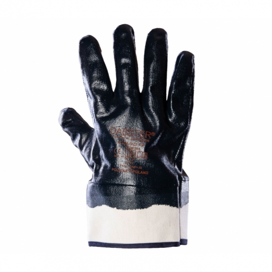 ..Część dłoniowa: Powleczenie pełne, powleczona nitrylem, w kolorze ciemnoniebieskim,