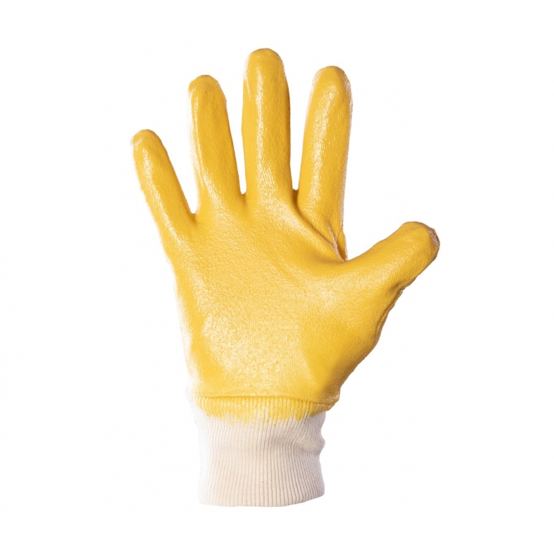 ..Część dłoniowa: Powleczenie ¾, powleczona nitrylem, w kolorze żółtym,