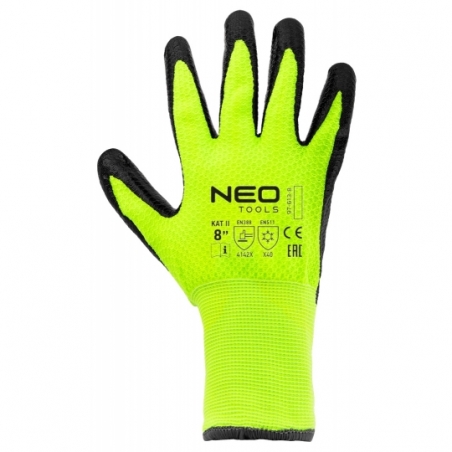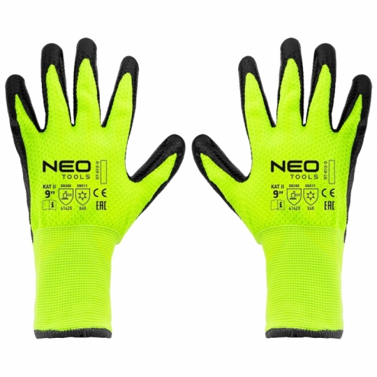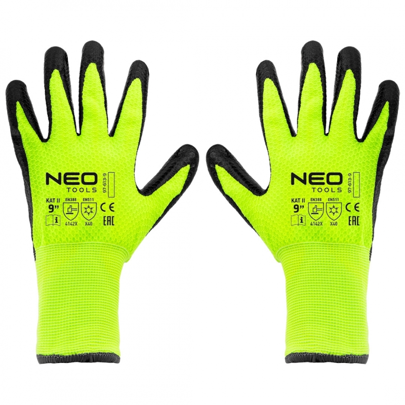 Rękawice robocze ocieplane, nylon powlekany lateksem, 4142X, rozmiar 9, materiał główny: nylon; pokrycie: lateksem, odporność na ścieranie (od 0 do 4) 4, odporność na przecięcie ostrym przedmiotem (od 0 do 5) 1, odporność na rozdzieranie (od 0 do 4) 4, odporność na przekłucie (od 0 do 4) 2, odporność na przecięcie wg EN ISO 13997 X, odporność na zimno konwekcyjne (poziomy ochrony 0–4) X, odporność na zimno kontaktowe (poziomy ochrony 0–4) 4, przepuszczanie wody (0 lub 1) 0, produkt odpowiedni do wszelkich prac transportowych, przenoszenia, magazynowania, prac montażowych, certyfikat CE na zgodność z normą EN388 i EN512