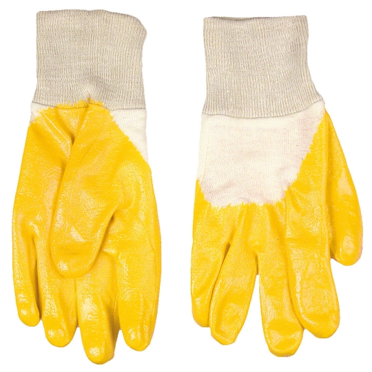 Rękawice robocze, dzianina bawełniana powlekana w połowie kauczukiem nitrylowym, 10.5", odporność na ścieranie 2, odporność na przecięcie ostrym narzędziem 1, odporność na rozdzieranie 3, odporność na przekłucie 2, CE