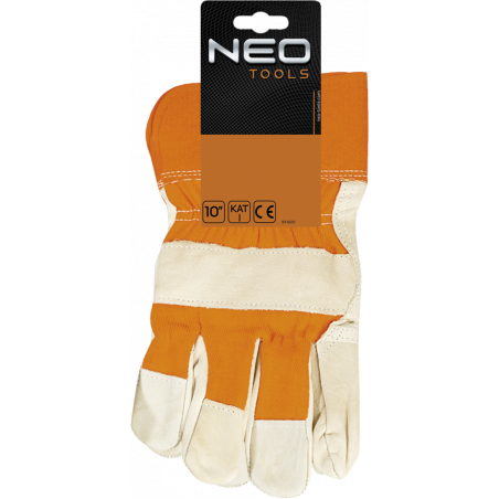 Rękawice robocze, skóra bydlęca licowa, 10,5", dodatkowa podszewka strony chwytnej, wzmacniane szwy, usztywniony mankiet, odporność na ścieranie 4, odporność na przecięcie ostrym narzędziem 1, odporność na rozdzieranie 2, odporność na przekłucie 2, CE