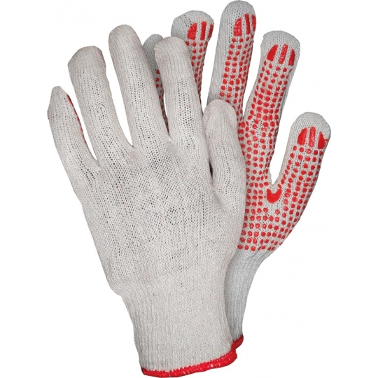 - nakropienie z PCV na części dłonicowej zapewnia dobrą chwytność podczas przenoszenia towarów, a także zwiększa trwałość rękawicy