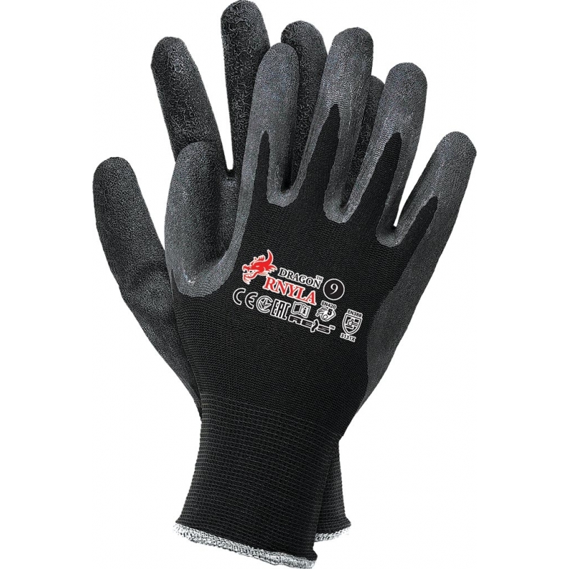 - powlekane latexem o chropowatej strukturze zapewniającej doskonałą chwytność, nie powodując usztywnienia rękawicy