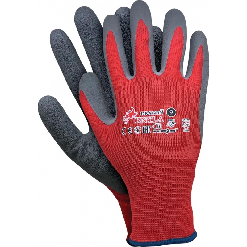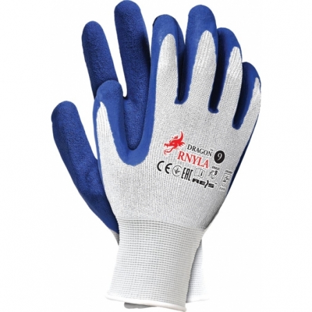 Rękawice ochronne wykonane z nylonu z dodatkowym powleczeniem z latexu.