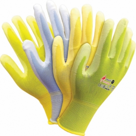 Rękawice ochronne wykonane z nylonu w jaskrawych kolorach.