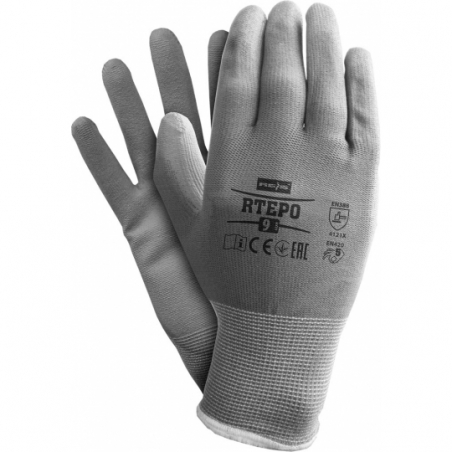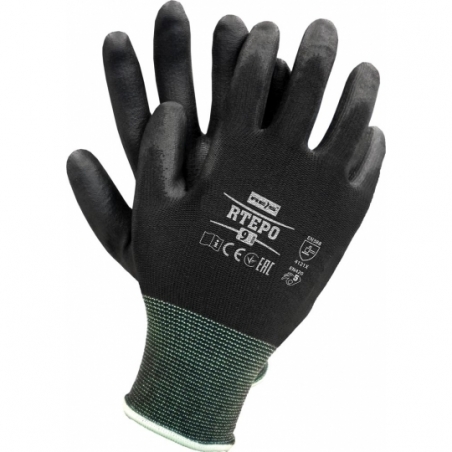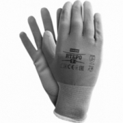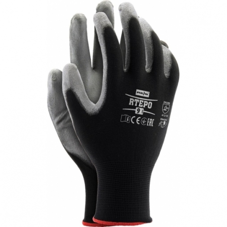 Rękawice ochronne wykonane z poliestru, powlekane poliuretanem.