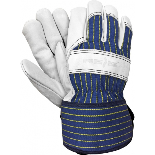 Rękawice ochronne wzmacniane skórą bydlęcą.
