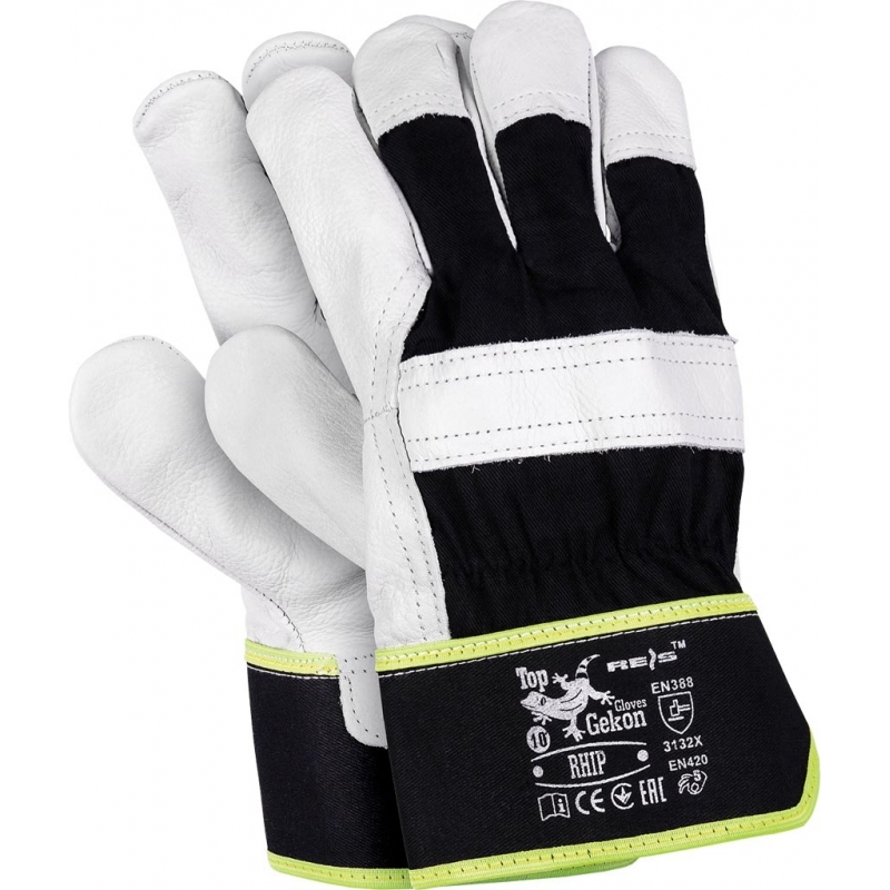 Rękawice ochronne wzmacniane skórą bydlęcą.
