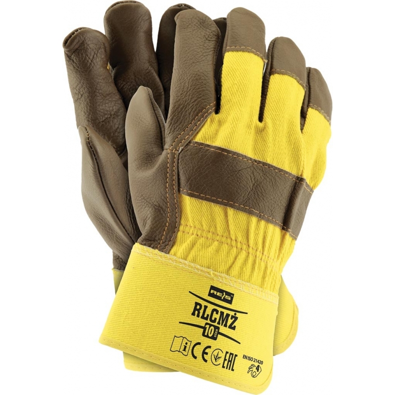 Rękawice ochronne wzmacniane skórą bydlęcą.
