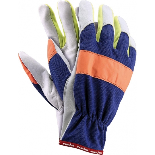 - elementy z fluorescencyjnej tkaniny zwiększają widoczność użytkownika, zaś wysokiej jakości miękka skóra kozia zapewnia komfort pracy