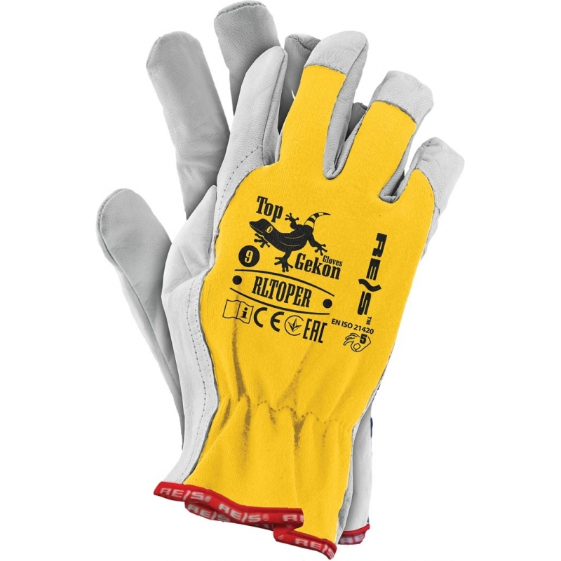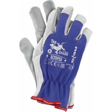 Rękawice ochronne wykonane z wysokiej jakości skóry koziej. - skóra kozia licowa w jasnych kolorach - wierzch wykonany z elastycznej tkaniny w granatowym kolorze, dzięki czemu idealnie dopasowują się do dłoni - całodłonicowe - część chwytna rękawicy wykonana z jednego kawałka skóry, dzięki czemu wykazują większą wytrzymałość i odporność na przetarcia - miękka kozia skóra wysokiej jakości zapewnia doskonały komfort pracy i zadowolenie nawet najbardziej wymagającego klienta - popularnie stosowane do ogólnych prac mechanicznych - doskonałe dla kierowców oraz kadry kierowniczej
