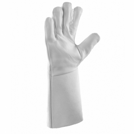 ..Mankiet/zakończenie: długi, usztywniony mankiet w części przedramienia wykonany z dwoinowej skóry bydlęcej,