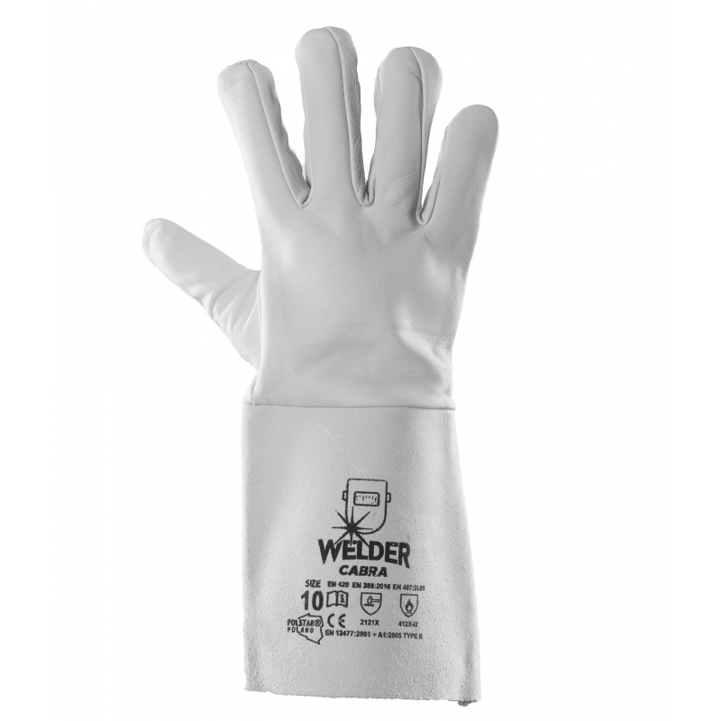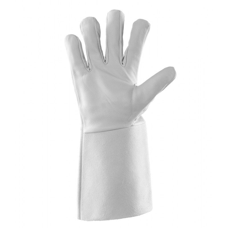 ..Mankiet/zakończenie: długi, usztywniony mankiet w części przedramienia wykonany z dwoinowej skóry bydlęcej,
